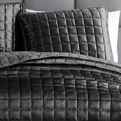 The Lyndon 3 peice coverlets from Riverbrook Home are the perfect combination of contemporary style and old world luxury. Shimmer velvet makes a dramatic statement with this simple essential combination of coverlet and shams. The simple geometric stitch pattern creates a cool symmetry making this a perfect choice from modern to traditional. Keep you bed simple or doll it up and make it your own. Machine washable.