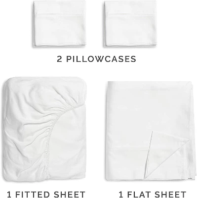 - 4 piece sheet set – this 1000 thread count cotton queen sheet set comes with 4 pieces: one flat sheet, one fitted sheet, and two pillowcases with a fine embroidery lining. The fitted sheet fits mattresses up to 16 inches deep and fits smaller mattresses just fine.