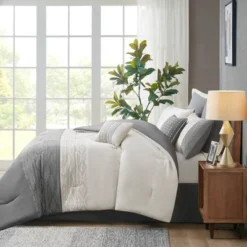 8pc Tufted Broken Stripe Comforter Bedding Set White – Threshold™