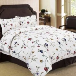 3pc Queen Floral Garden Cotton Flannel Printed Oversized Duvet Set Multi – Tribeca Living