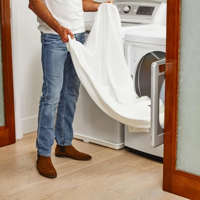 - The flat sheet has a 4″ double-fold top with a single pleat hem and a smart tag for ease of use