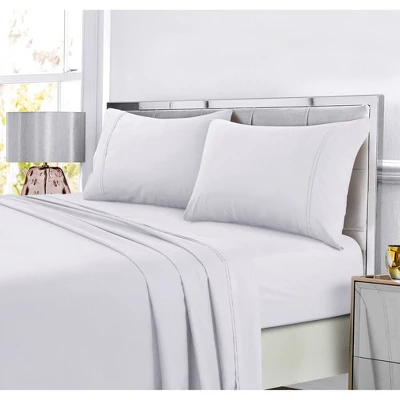 - 4-piece solid sheet set includes one oversized flat sheet, one deep pocket fitted sheet and two pillowcases The flat sheets and pillowcases feature a double-pleated hem treatment Fitted Sheets are fully elasticized and feature 21″ deep pockets Available in eleven fabulous colors