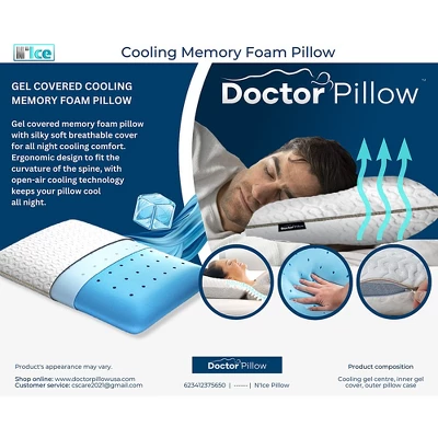 The N’Ice Pillow is not only soft as clouds, but also has perfect supportive, wouldn’t be flattened and keep its shape after long-term use. The firm pillow can give enough support to your heat, neck, ease shoulder, back and neck pain, reduce snoring and the number of flips while sleeping.To create a gel pillow, we adopted a honeycomb decompression hole design and the newly developed active foam, which can exhaust heat and circulate the air to achieve ventilation. The thermal characteristics of the cooling pillow and the specially added cooling gel particles can be adjusted according to the user’s body temperature, cooling down, and keeping a comfortable sleep.The foam pillow won’t be too flat or too thick, but comfortable mid-loft design, so it fits the golden ratio of the structure of the human body, can quickly match your personal appropriate height within 7 days due to the medium density and memory foam with slow rebound. The contour pillow is well designed to provide a cushion for the head and comfort or support for the upper spinal region while keeping the body in a horizontal positionGel Covered Cooling Memory Foam Pillow with silky soft breathable cover for all night cooling comfortErgonimic design to fit the curvature of the spine,with open air cooling technology keeps your pillow cool all night