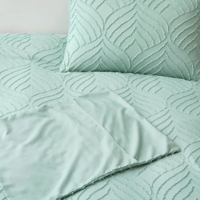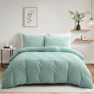 Featured leaf pattern with a simple solid color design, this soft duvet cover set will add a unique and stylish look to your bedroom. With premium microfiber polyester fabric, this lightweight duvet cover is soft for year-round use. The long zipper allows you to put on with a duvet insert and seal off more easily and quickly. Also with corder ties to hold the comforter without bunching. The matching pillowcase is designed with envelope closure. Twin size includes 1 duvet cover and 1 pillowcase, Full/Queen and King size includes 1 duvet cover and 2 pillowcases. Machine washable and tumble dry.