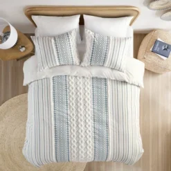Ink+Ivy 3pc Imani Cotton Printed Duvet Cover Set With Chenille