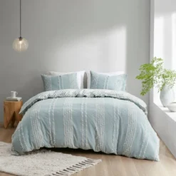 3pc Mila Cotton Duvet Cover Set With Chenille Tufting – Ink+Ivy