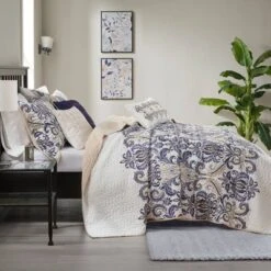 - Solid-color velvet duvet surface reverses to a multicolored geometrical pattern for a second look