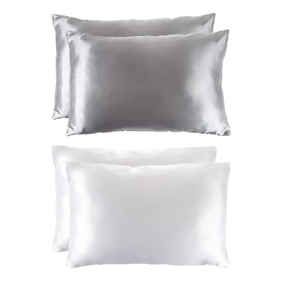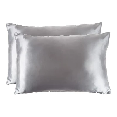 - PRODUCT DETAILS- Material: Polyester Microfiber Satin, Dimensions: (L) 37-in x (W) 21-in, Set of Two, King Size, 230 Thread Count, Machine Washable on Delicate Cycle, Color: Silver Gray