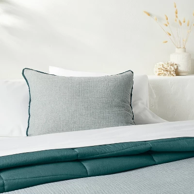 Accessorize your bed with the Textured Chambray Cotton Pillow Sham from Casaluna™. In a solid hue, this standard-sized pillow sham is designed with a chambray textured surface and accented with a slim fringed border in a matching shade for depth and dimension. Easy to match any decor aesthetic, this rectangular sham has a zipper closure to keep the pillow insert tucked in with a neat finish, while still allowing easy removal for cleaning. Plus, the sham is machine washable for easy care and maintenance.