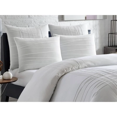 Sophisticated solid bedding at its finest. The Variegated Pleats bedding set by City Scene is beautiful in its simplicity. Solid white throughout with a vertical and horizontal overlapping pleated design to add a modern look for your bedroom. Both the standard and king sham along with the available European sham has a matching pleated design. For additional layering add your favorite sheet set or buy a new one. 100% cotton is soft and will last a lifetime. Machine washable for easy care.